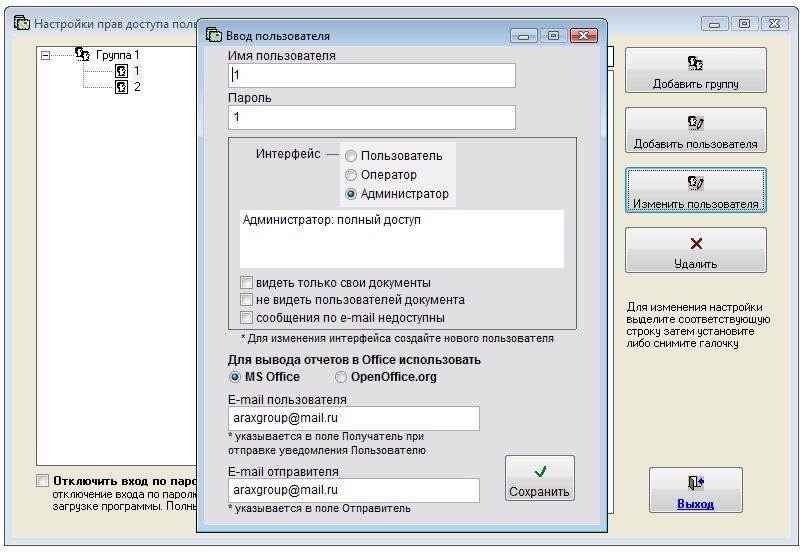 Затем раскройте группу, выберите пользователя и нажмите на кнопку "Изменить пользователя".
