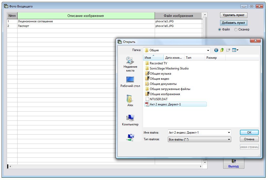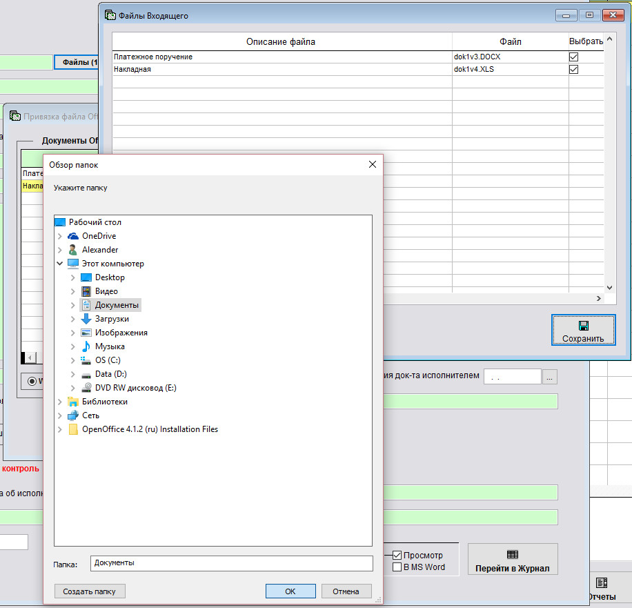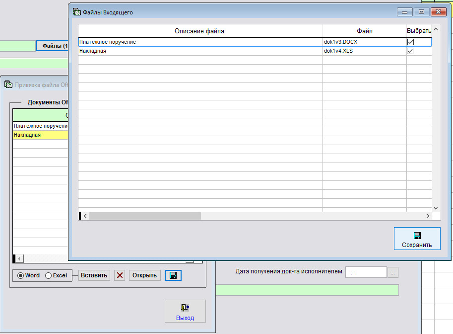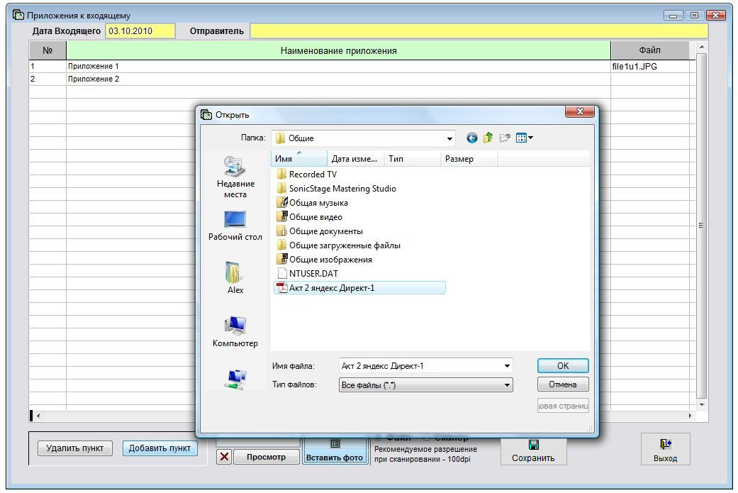 Выберите нужный файл приложения к данному входящему и нажмите ОК.