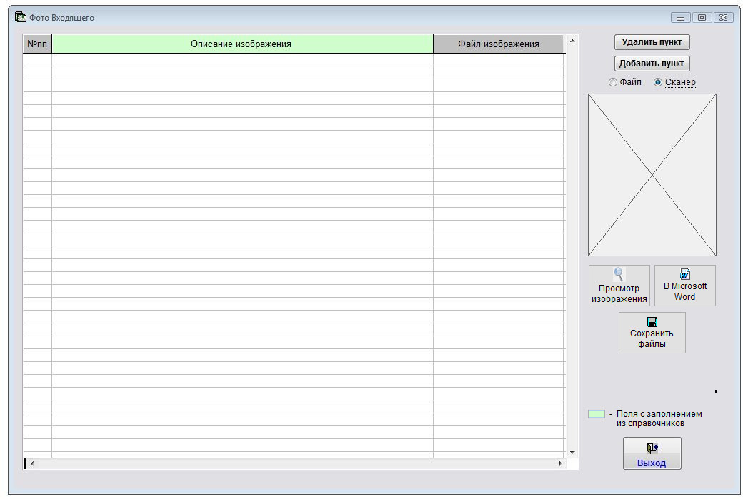 Если переключатель установлен на "Сканер", то появляется возможность получения изображения со сканера