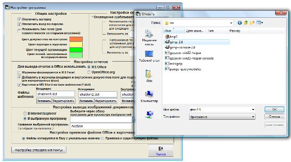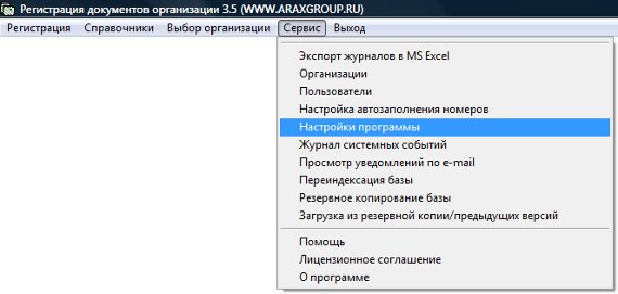 Для того, чтобы назначить программу для просмотра сканированных изображений документов, выберите пункт меню "Сервис-Настройки программы".