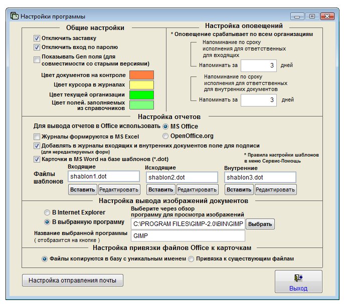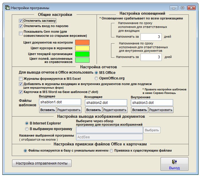Откроется окно настроек программы.