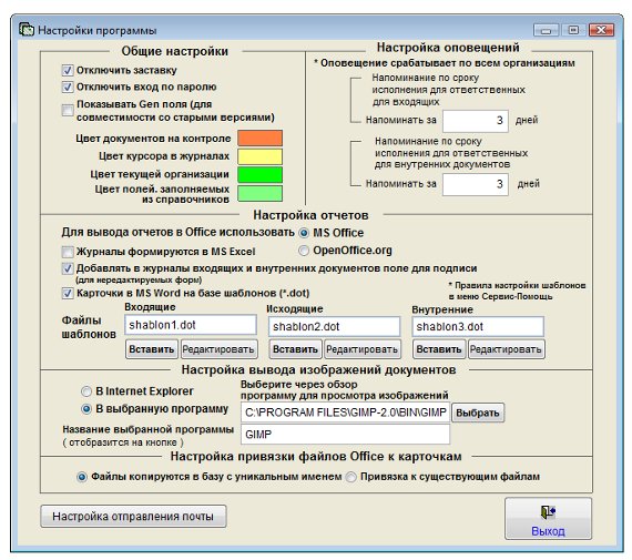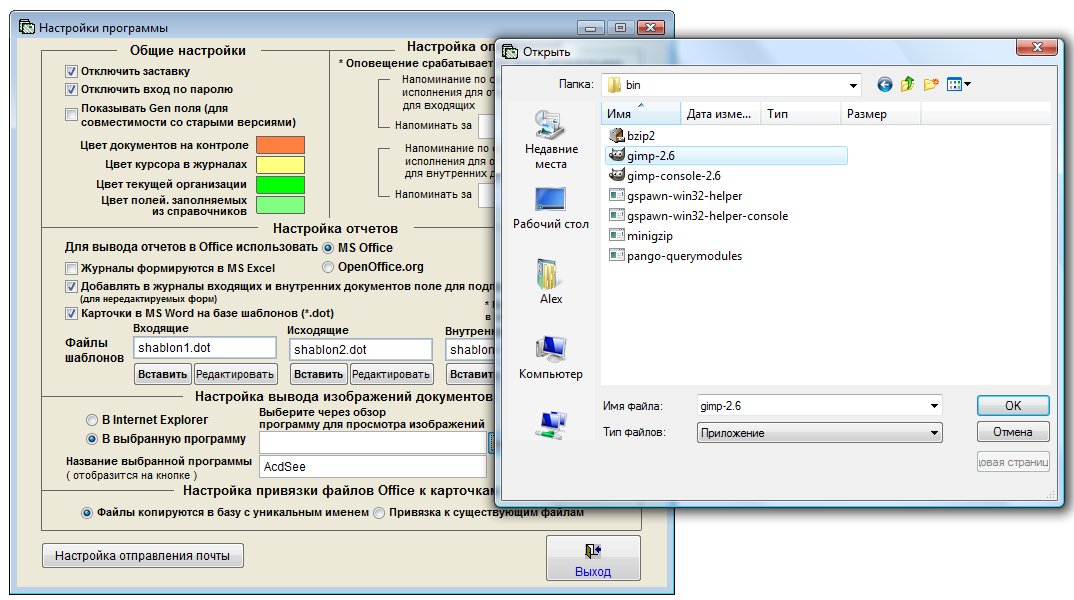 В поле "Название выбранной программы" введите название программы, которое отобразится на кнопке в разделе просмотра изображений документов, например "GIMP".