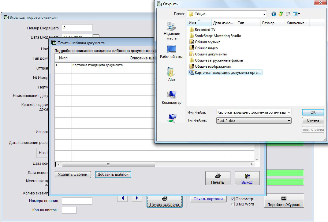 Как создать шаблон произвольного документа к входящему и добавить его в программу