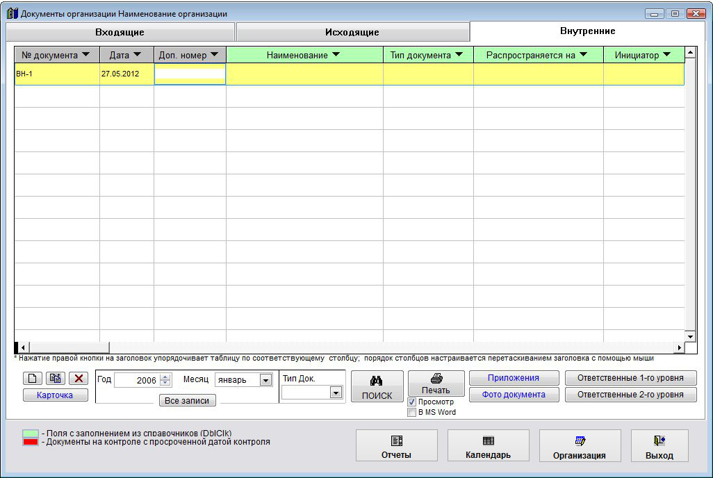 Работа с журналами исходящих и внутренних документов осуществляется аналогично работе с журналом входящих документов.