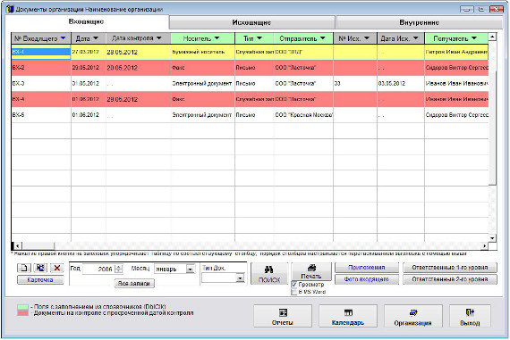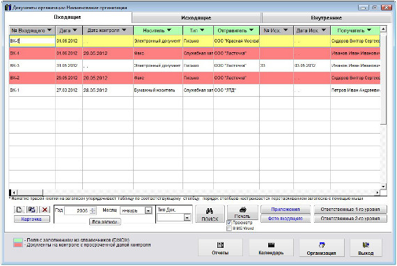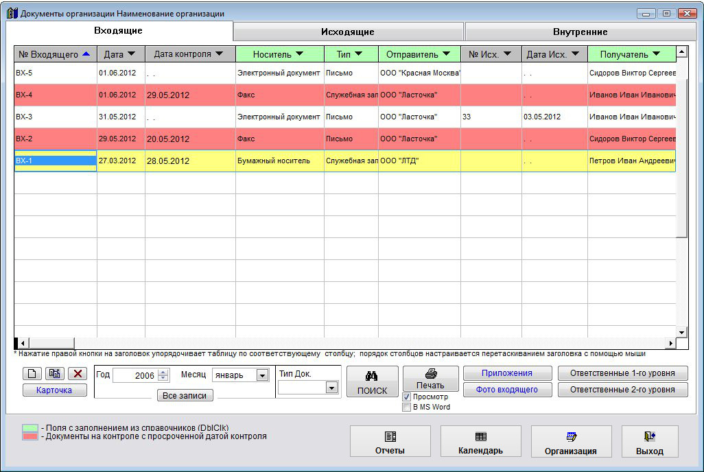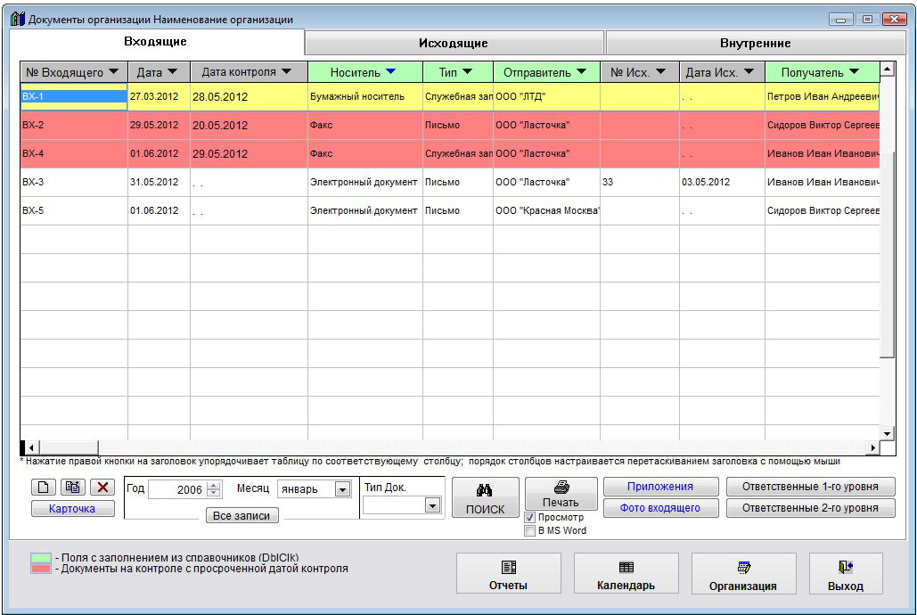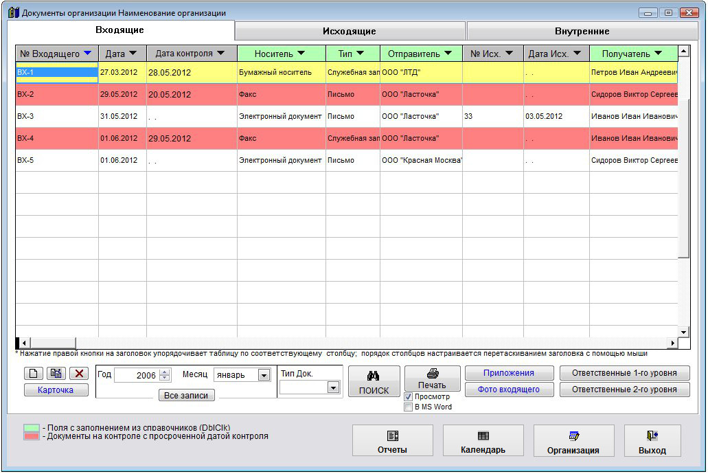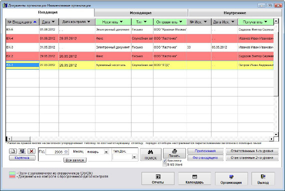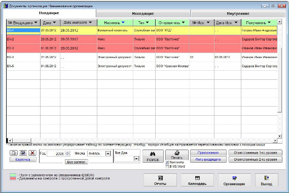 Аналогичным образом можно упорядочить записи по любому столбцу в журналах входящих, исходящих и внутренних документов.