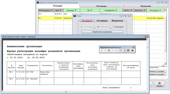 В отчет попадут документы, у которых дата входящего попадает в установленный период. Документы упорядочиваются по дате входящего.