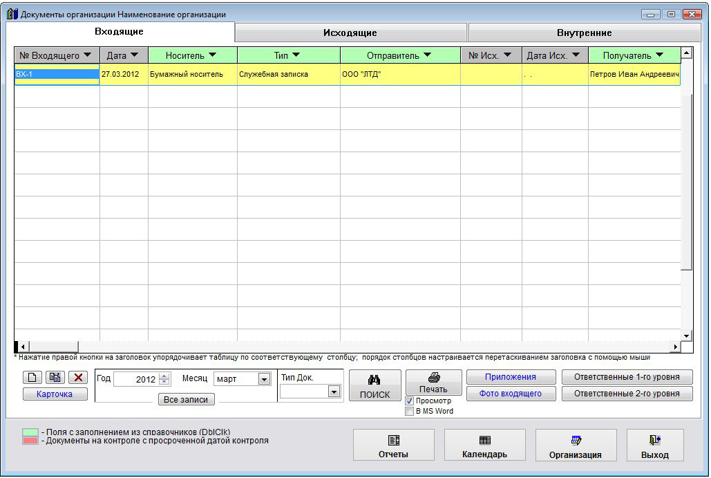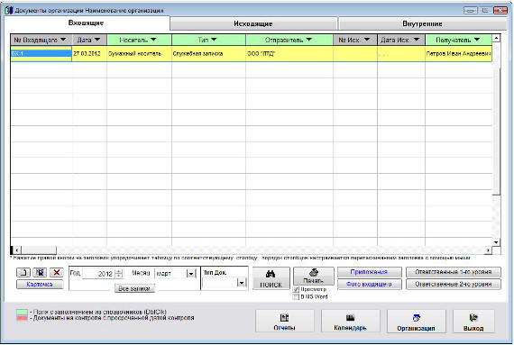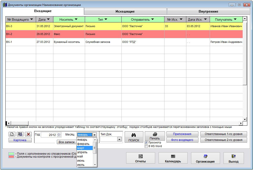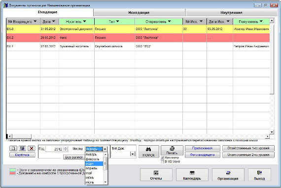 В журнале входящих отобразятся входящие документы с датой входящего за выбранный месяц выбранного года.