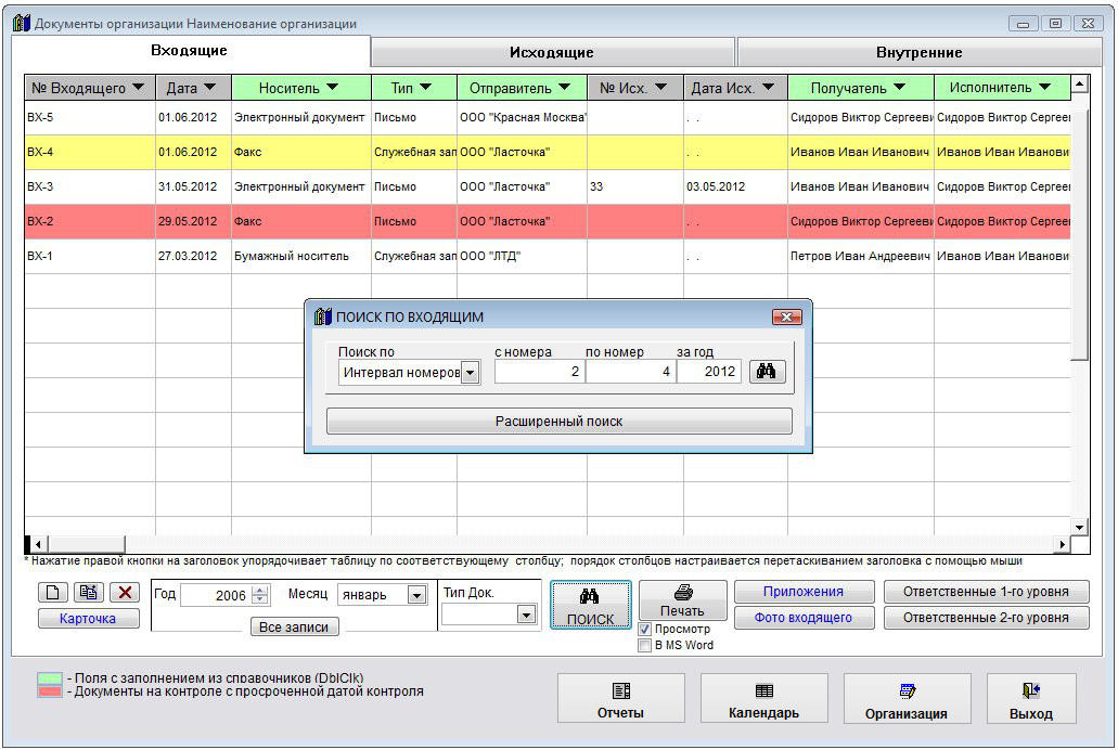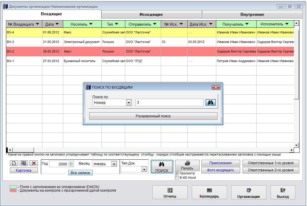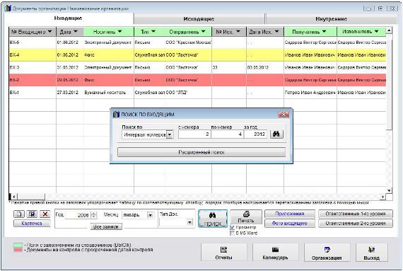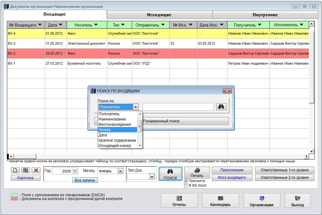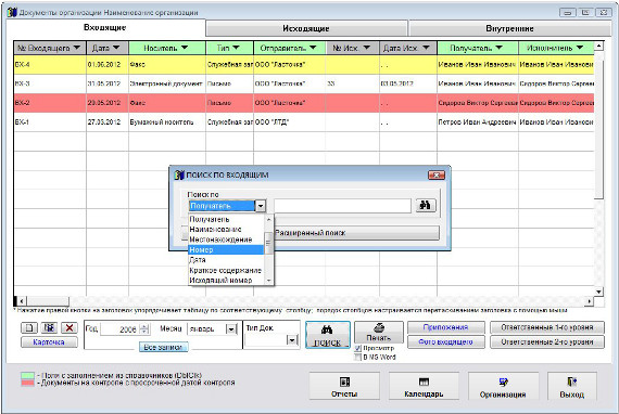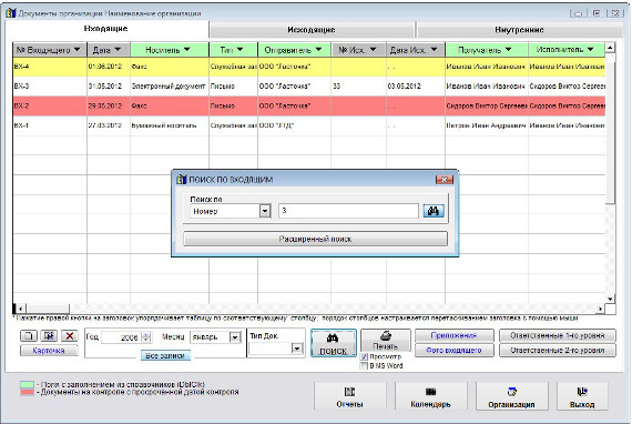 В окно поиска введите критерий поиска, например часть номера входящего, затем нажмите кнопку с изображением бинокля.