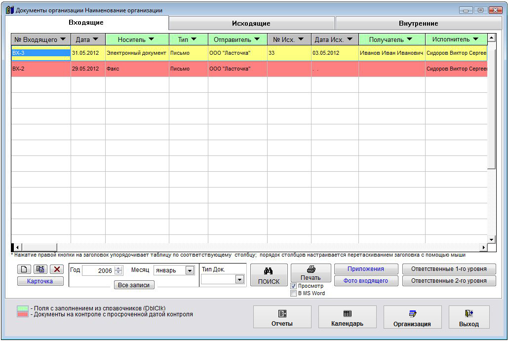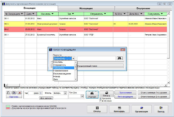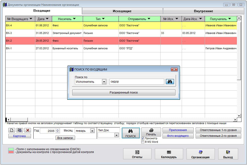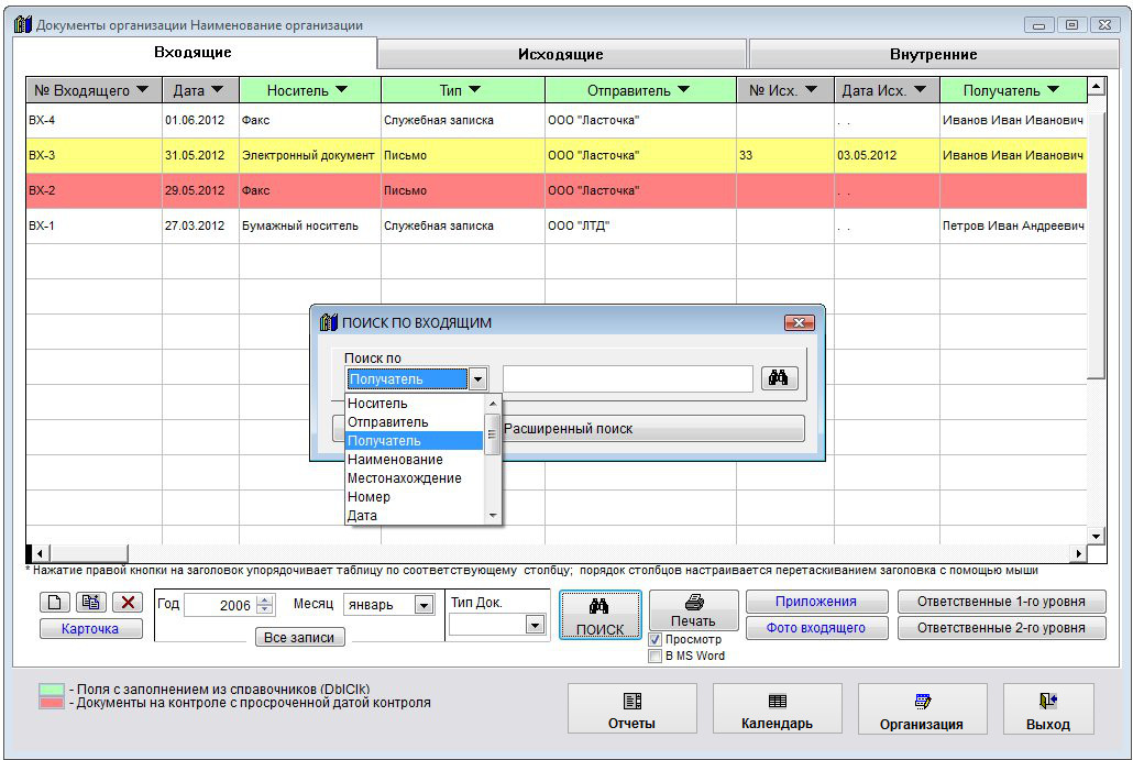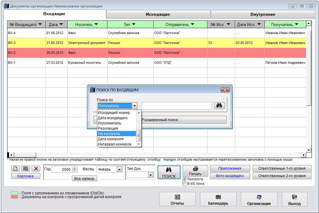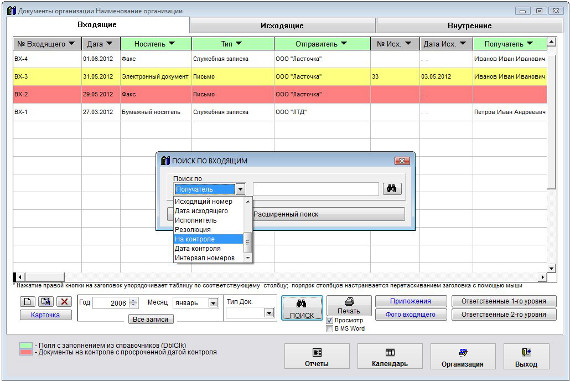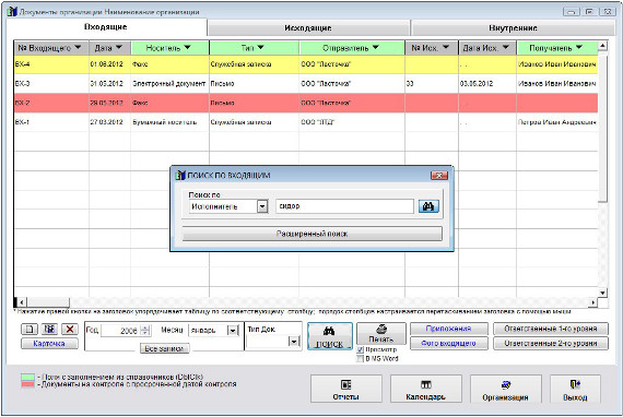 Аналогичным образом можно производить поиск в журналах входящих, исходящих и внутренних документов.