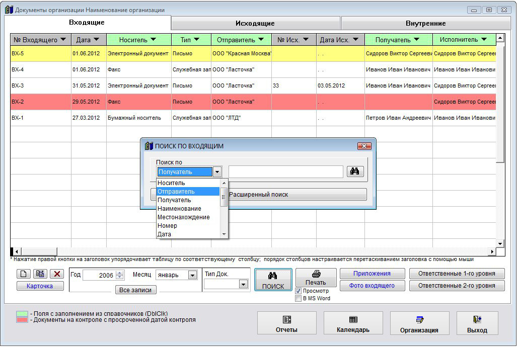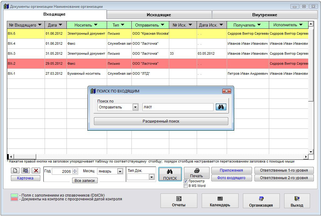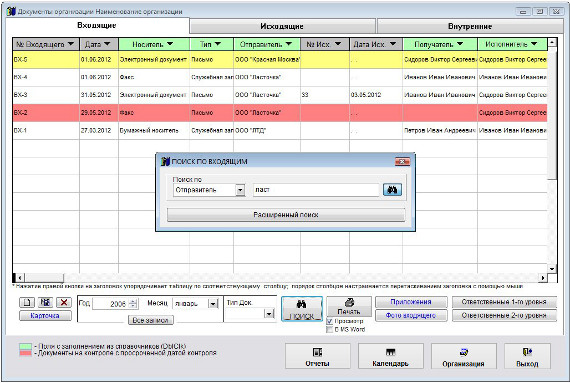 В журнале входящих отобразятся только те записи, которые соответствуют критерию поиска, т.е. где отправитель содержит введенный критерий поиска.