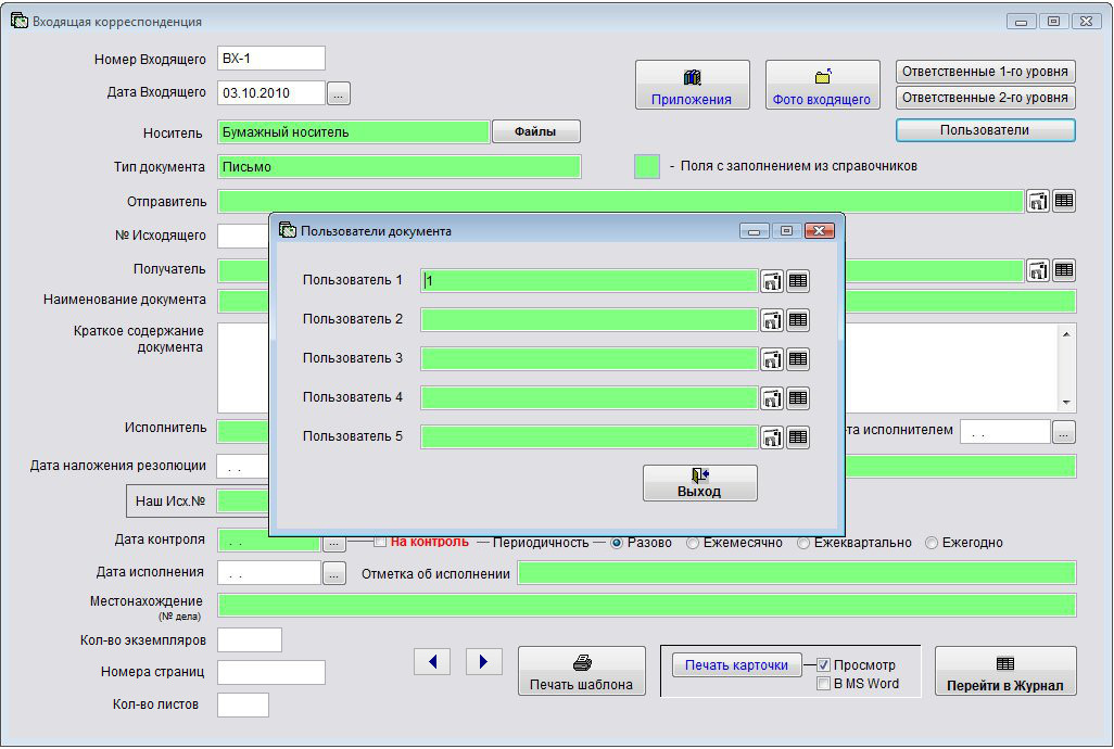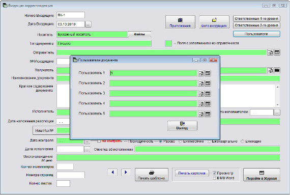 При включенном входе в программу по паролю верхнее поле будет заполнено именем пользователя, создавшего документ.
