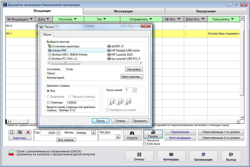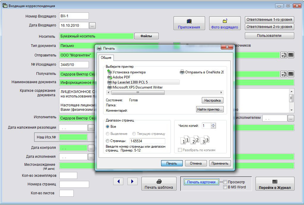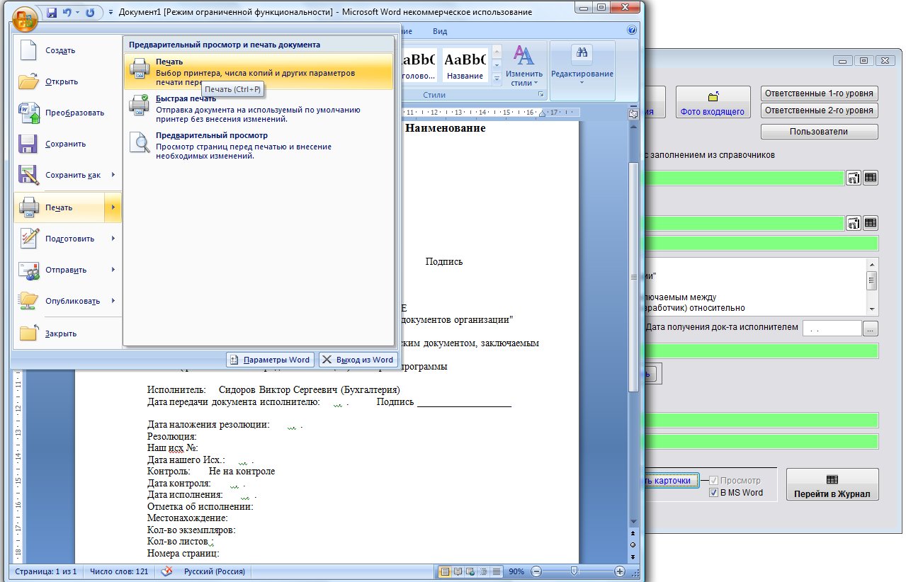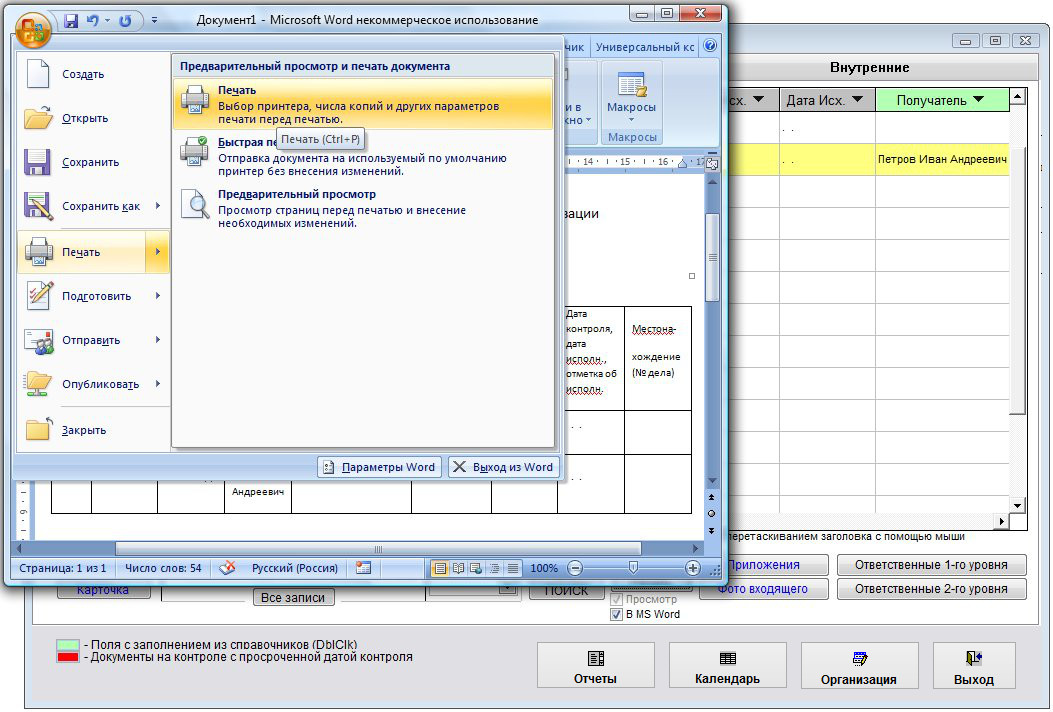 Как вывести на печать или в MS Word (OpenOffice Writer) отдельный входящий документ и журнал входящих документов