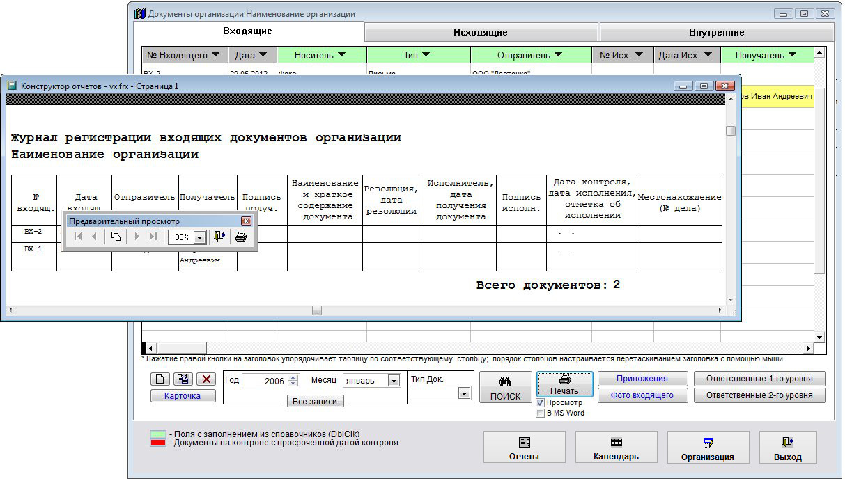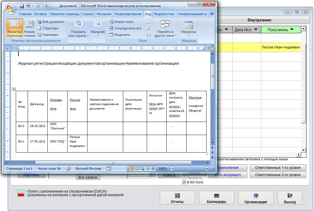 Журнал входящих документов будет сформирован в MS Word либо, при соответствующей