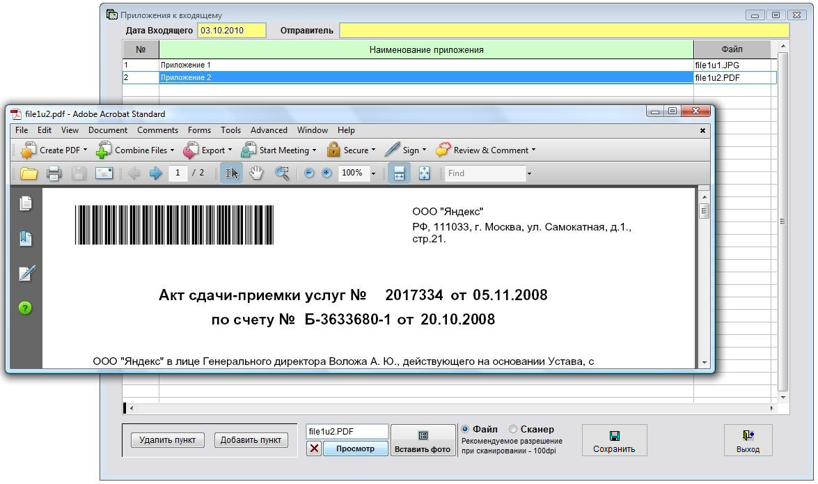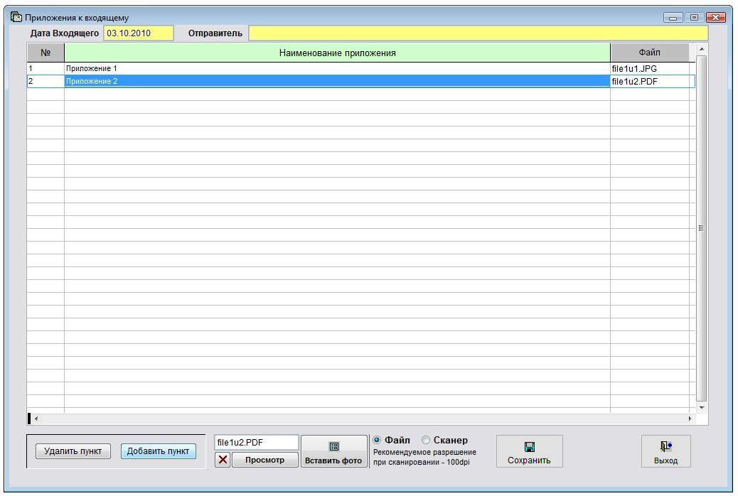 Вы можете прикрепить к карточке входящего документа различные файлы приложений.