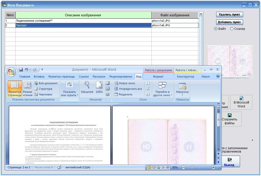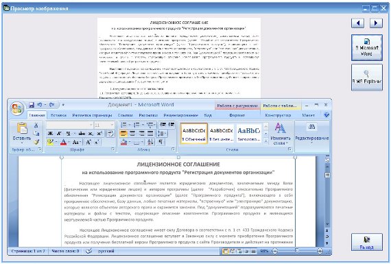 При нажатии на кнопку "В MS Word" изображение будет выведено в MS Word (либо в OpenOffice Writer при соответствующей настройке.).