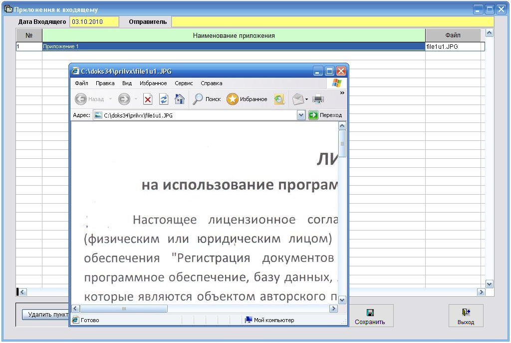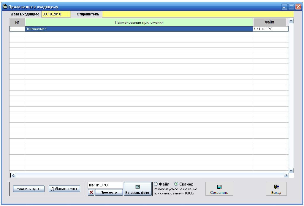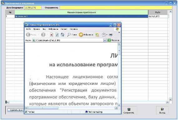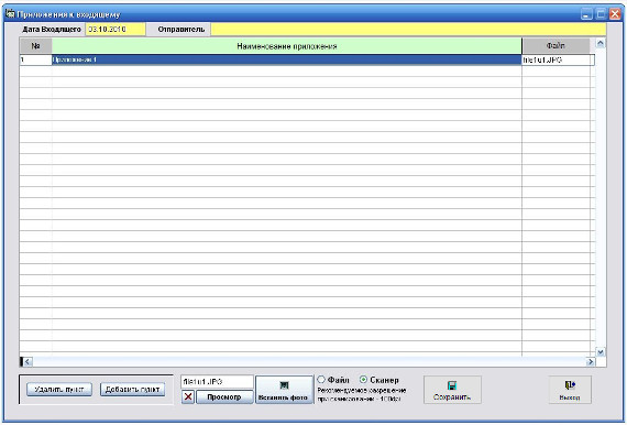 Для просмотра отсканированных изображений приложений к входящему, прикрепденных в разделе Приложения, нажмите кнопку "Приложения" в карточке входящего.