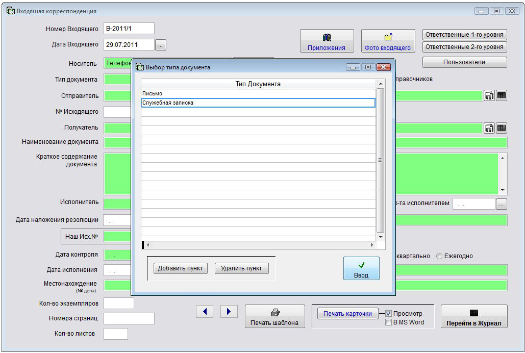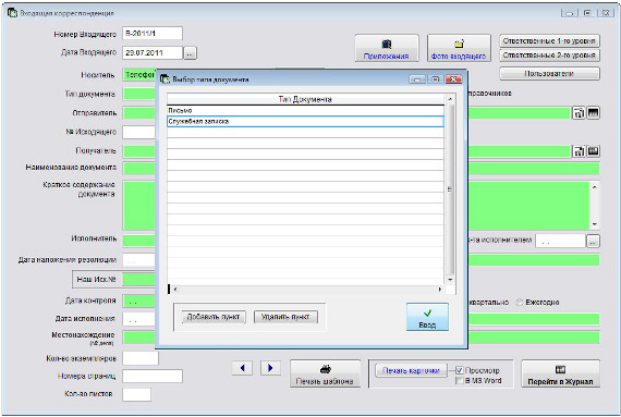 Для заполнения из справочников полей, выделенных соответствующим цветом, дважды щелкните (DblClk) по тому полю, которое требуется заполнить.