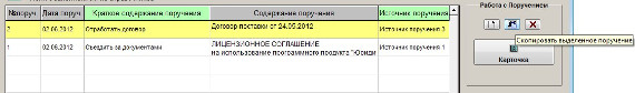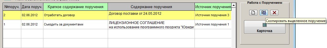 Затем нажмите среднюю кнопку "Скопировать выделенное поручение" в группе из трех кнопок в правом верхнем углу формы с изображением двух листов.