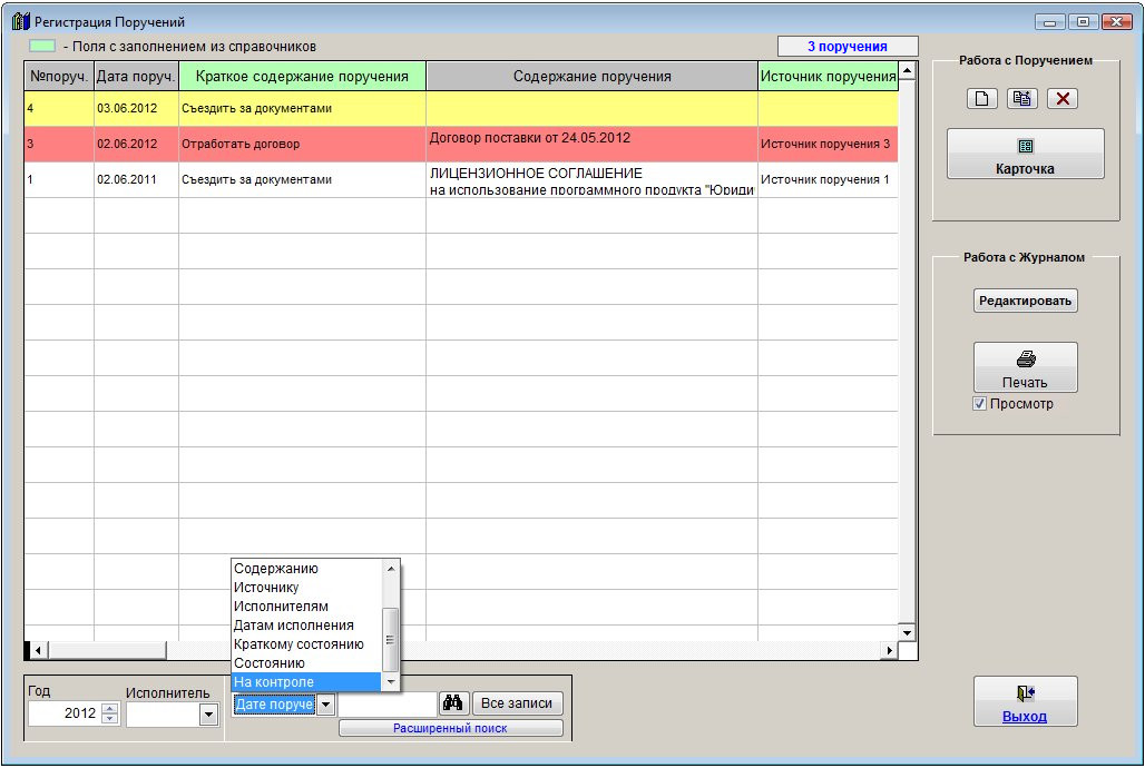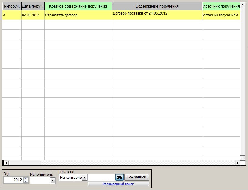 В журнале поручений отобразятся только те записи, которые соответствуют критерию поиска, т.е. по которым осуществляется контроль.