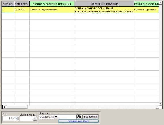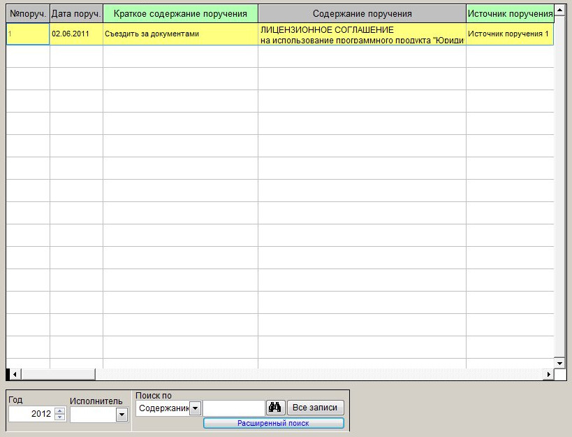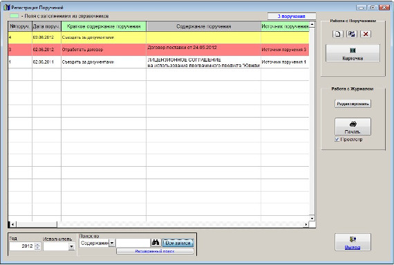 В результате выполнения поиска по журналу поручений в нем отображаются только записи, соответствующие критерию поиска.