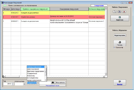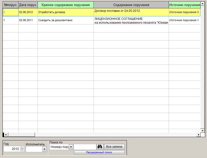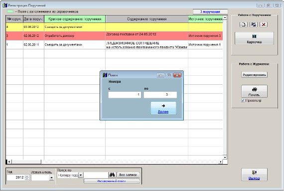 В журнале поручений отобразятся только те записи, которые соответствуют критерию поиска, т.е. где номер поручения попадает в заданный интервал номеров.
