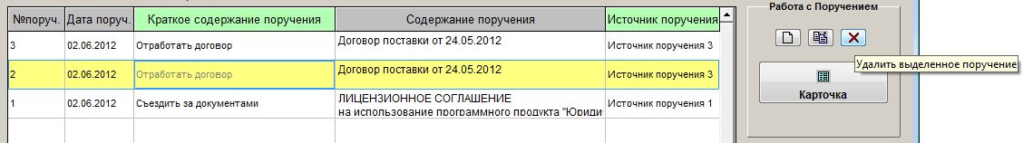 Затем нажмите кнопку с крестиком "Удалить выделенное поручение".