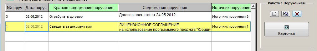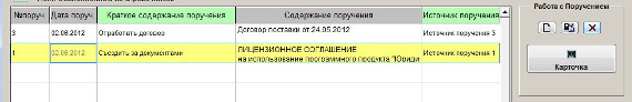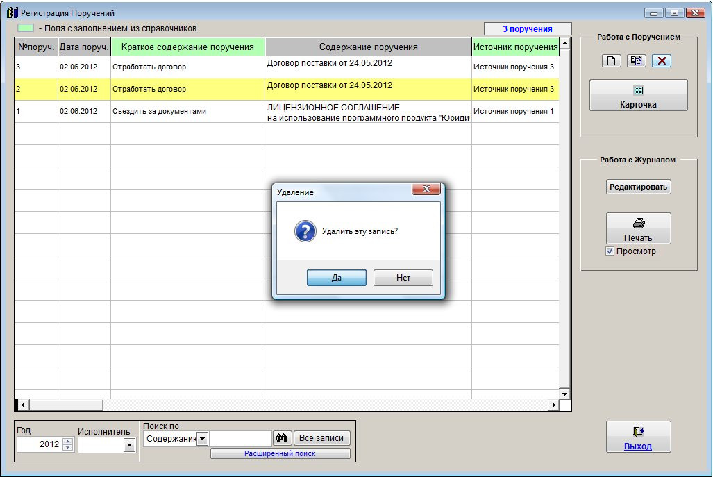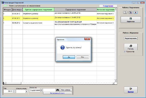 Для удаления поручения в журнале поручений установите курсор на поручение с нужным номером.