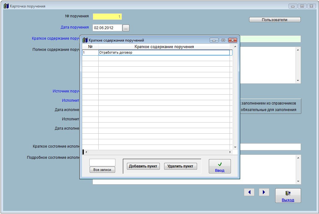 Мышью установите курсор на нужную строку в таблице и нажмите кнопку "Ввод".