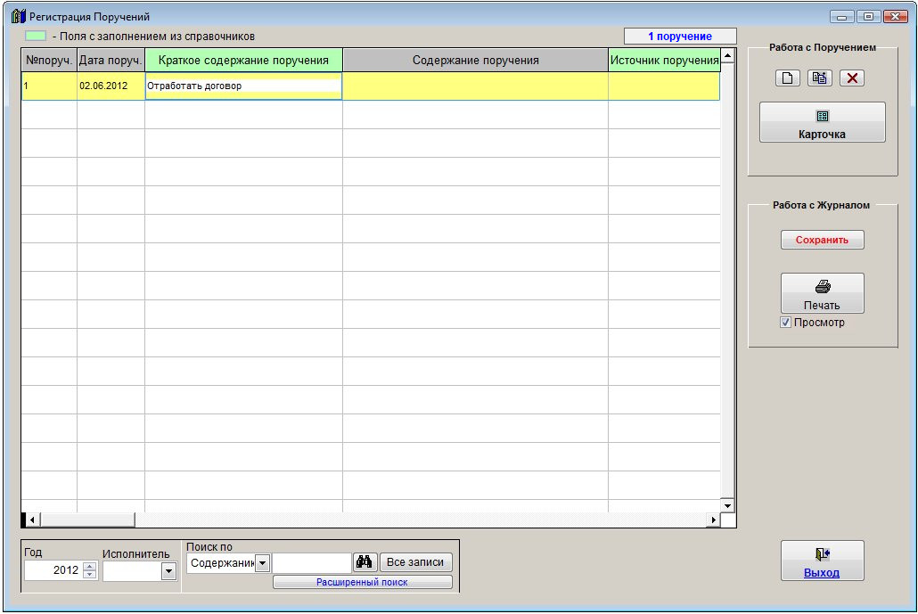 Для заполнения из справочников полей, выделенных соответствующим цветом, дважды щелкните (DblClk) по тому полю, которое требуется заполнить.