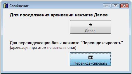 Выберите раздел меню "Сервис-Резервное копирование базы/Переиндексация базы".