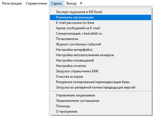 Для ввода реквизитов Вашей организации выберите пункт меню "Сервис-Реквизиты организации".