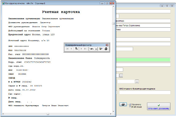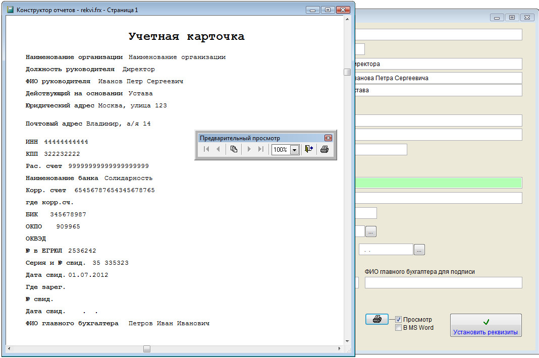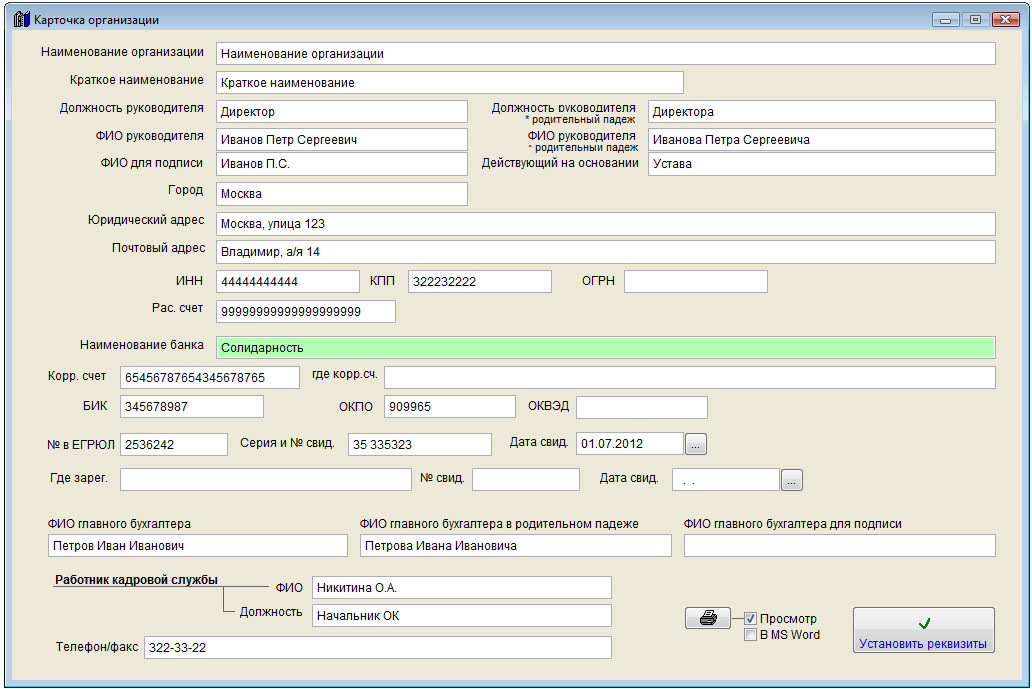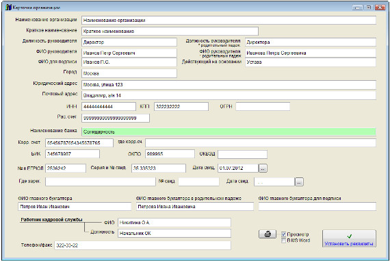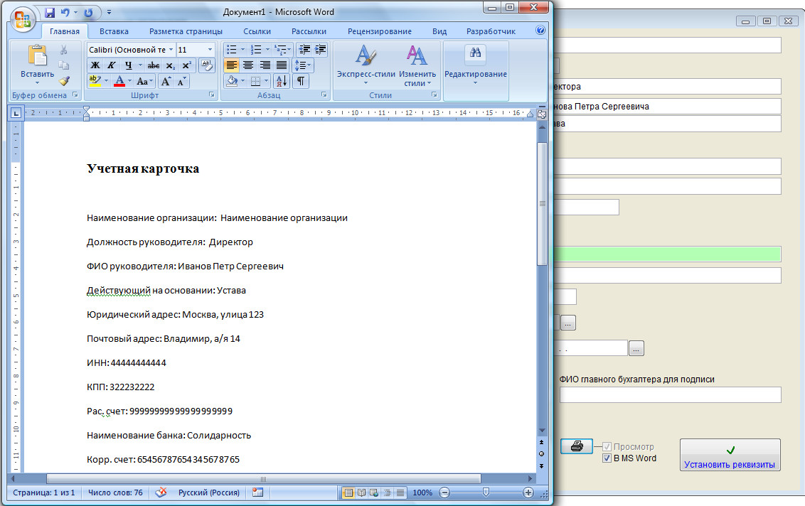 После окончания редактирования нажмите кнопку "Установить реквизиты".