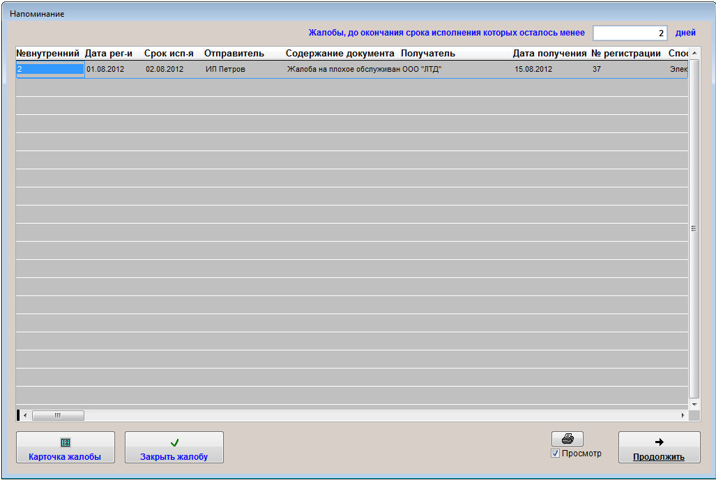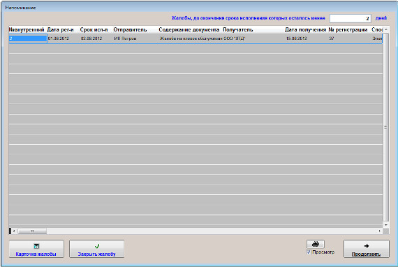 При загрузке программы станет появляться оповещение по Сроку исполнения жалобы.