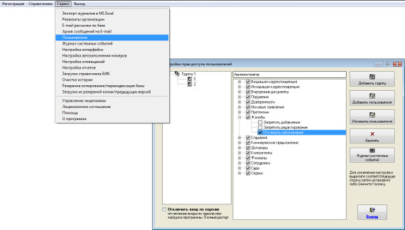 Для настройки параметров оповещения выберите пункт меню "Сервис-Настройка оповещений".