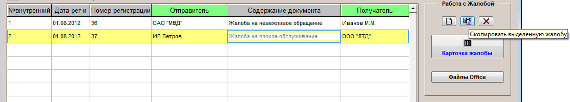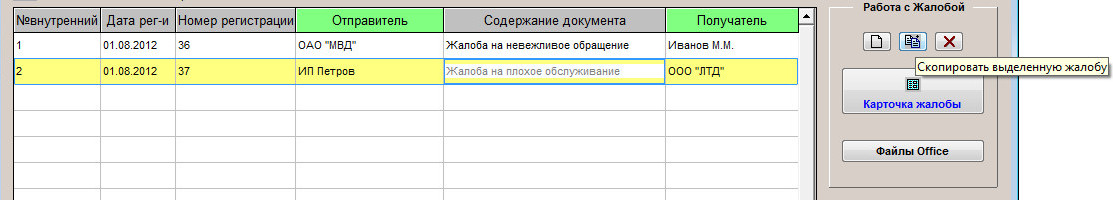 Для копирования ранее введенной жалобы в журнале жалоб установите курсор на жалобу с нужным номером.