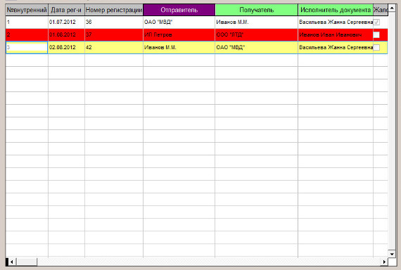 Записи в таблице упорядочатся по тому столбцу, на который нажали (в нашем случае по Отправителю).
