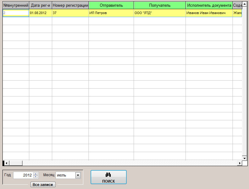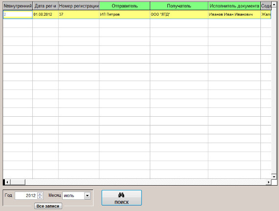 В журнале жалоб отобразятся только те записи, которые соответствуют критерию поиска.