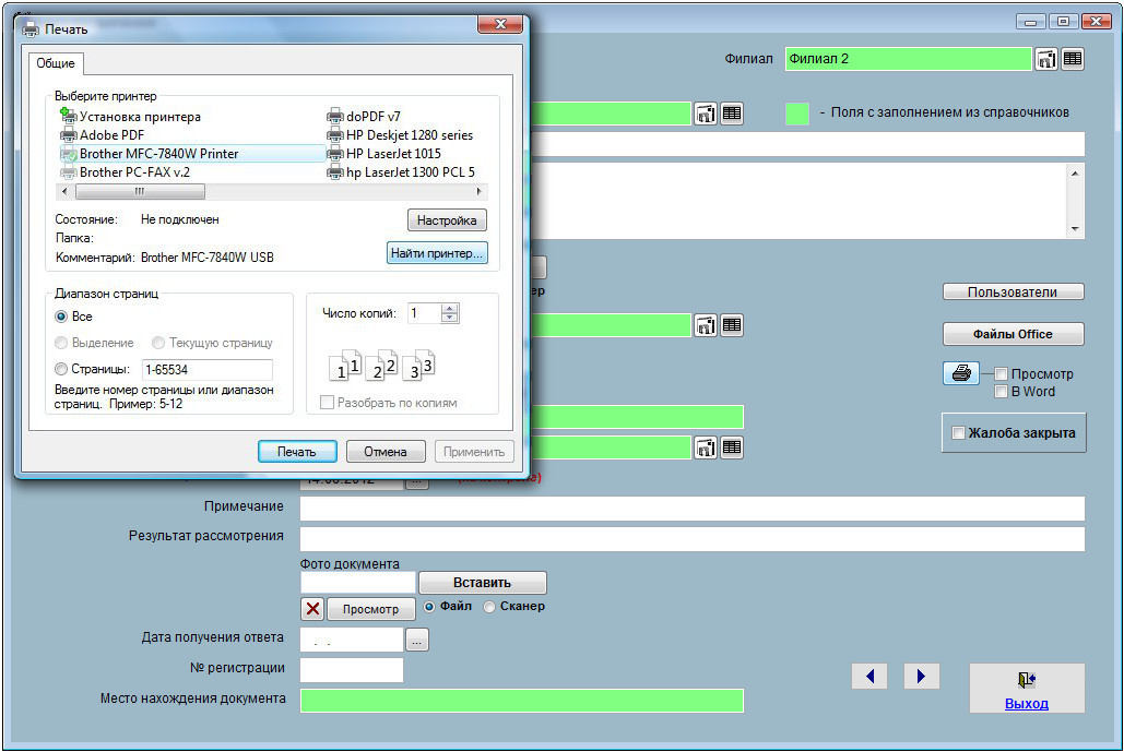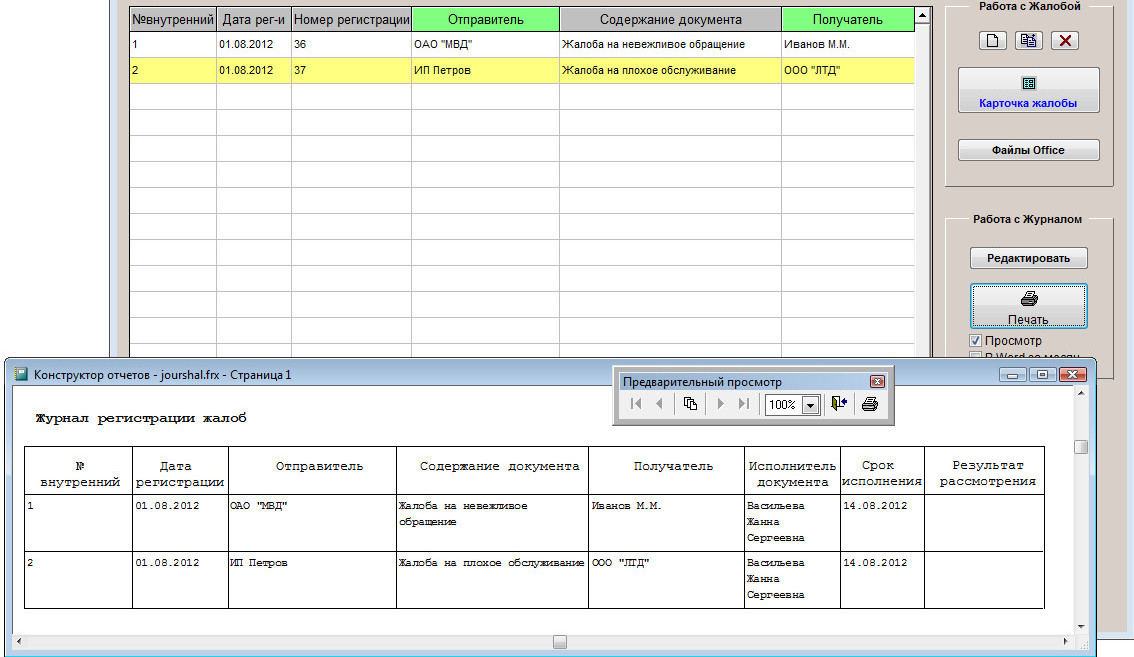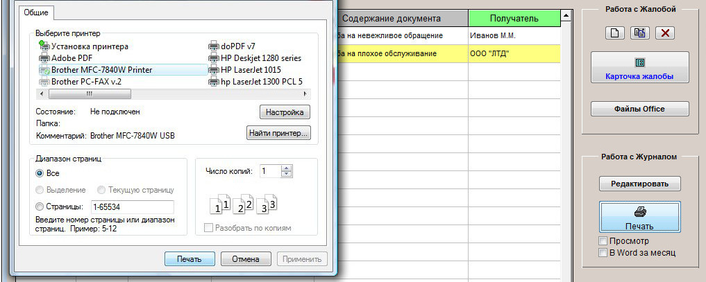 Как вывести на печать или в MS Word (OpenOffice Writer) отдельную жалобу и журнал жалоб