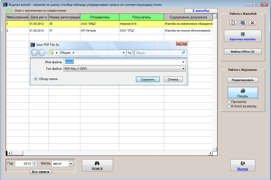 Аналогичным образом можно сохранить в формате PDF любые нередактируемые отчеты.