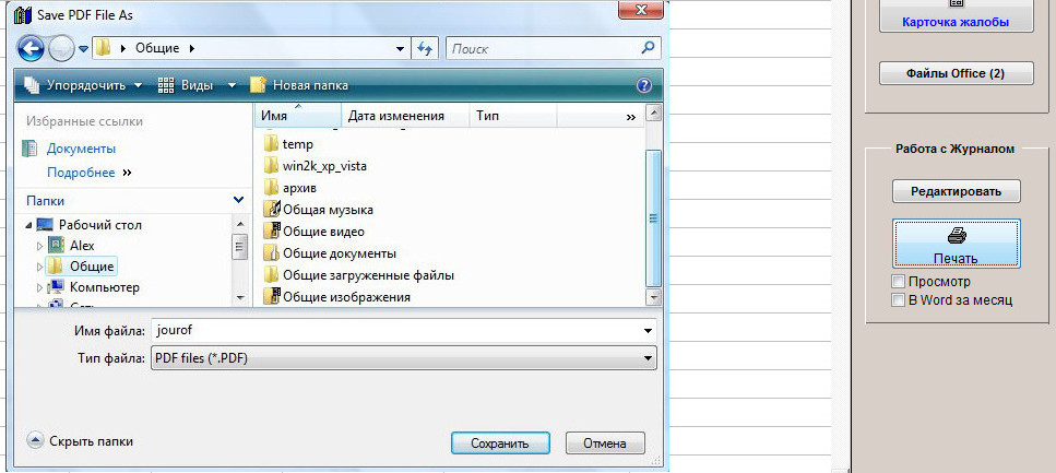 Для сохранения в файл нередактируемого отчета (карточки, журнала) отключите галочку "Просмотр" и нажмите на кнопку "Печать".