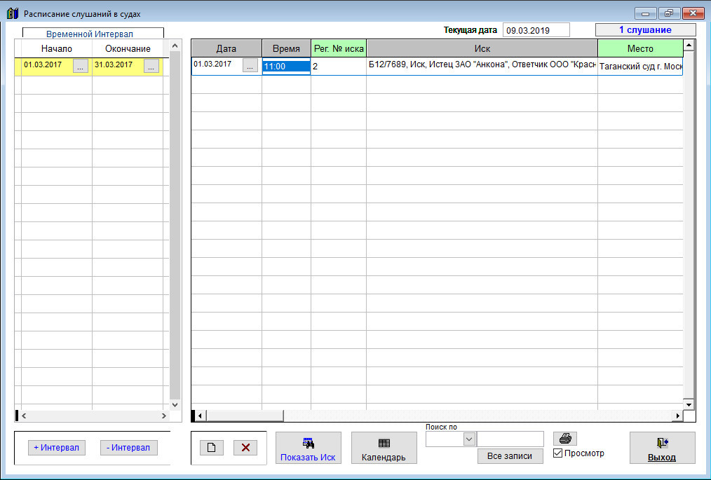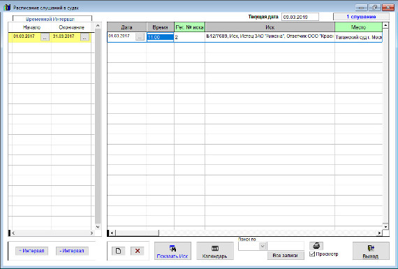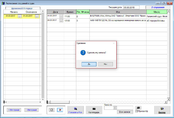 Для удаления слушания в расписании установите курсор на нужное слушание.