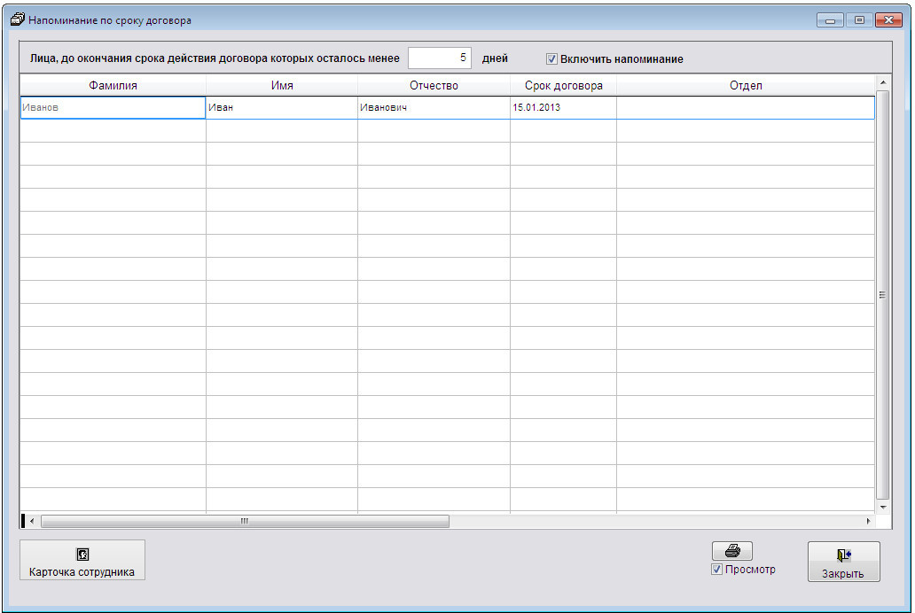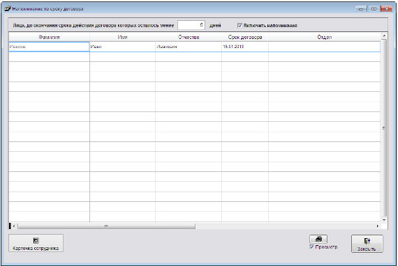 В напоминание попадут те сотрудники, у которых до срока трудового договора которых осталось менее указанного количества дней.