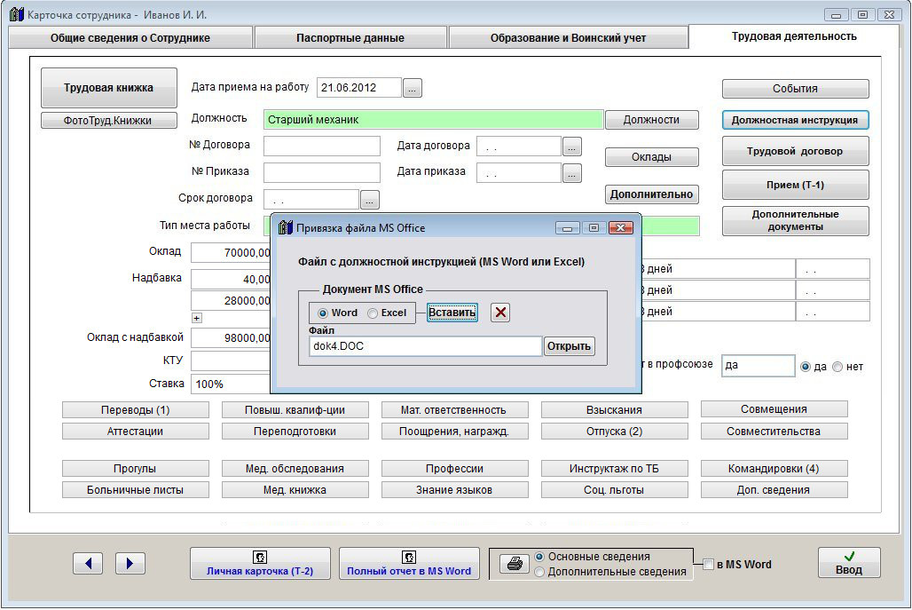 Как прикрепить к карточке сотрудника должностную инструкцию