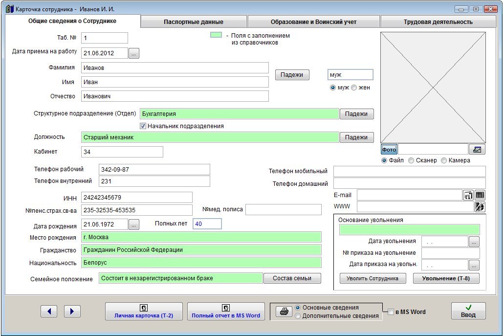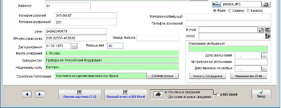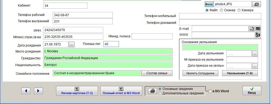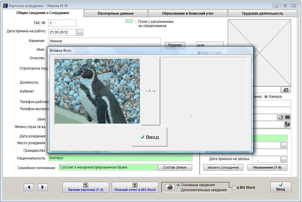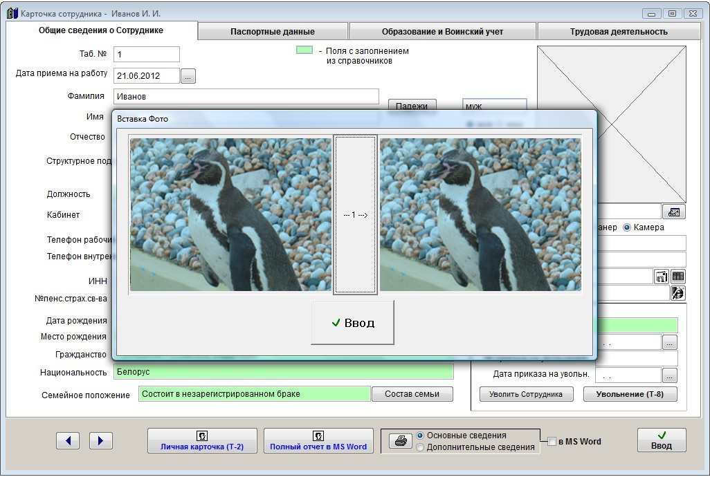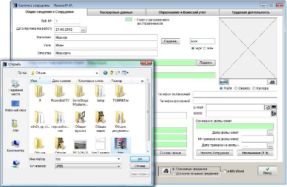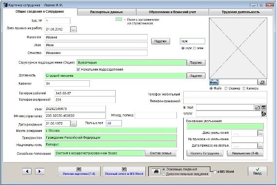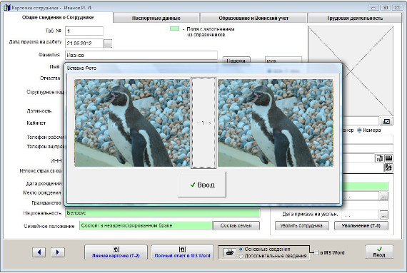 В программе есть возможность прикрепить фотографию к карточке сотрудника.