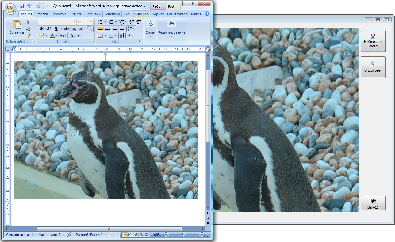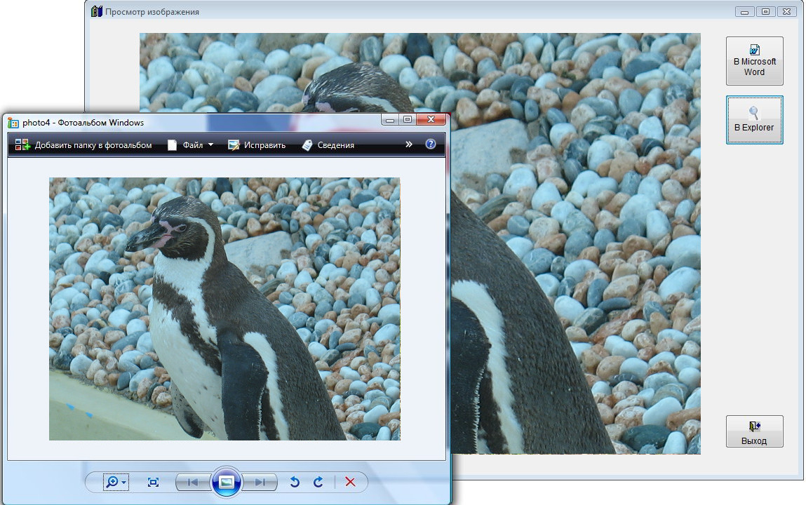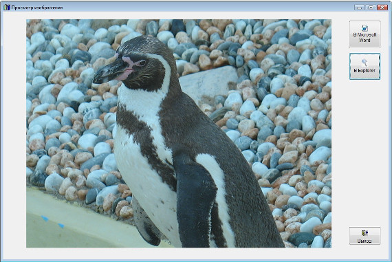 При нажатии на кнопку "В MS Explorer" изображение будет экспортировано в MS Explorer либо в приложение, указанное в настройках программы.