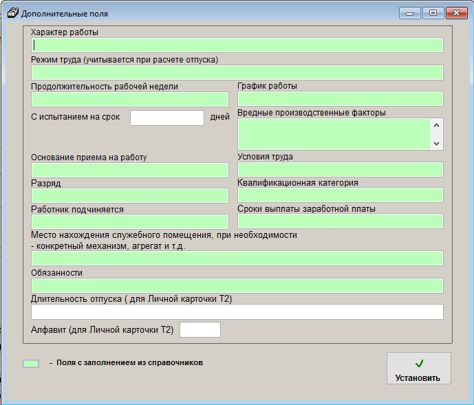 В программе есть возможность создавать графики работы для сотрудников и использовать их при заполнении табеля учета рабочего времени.