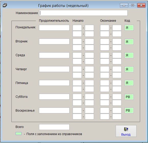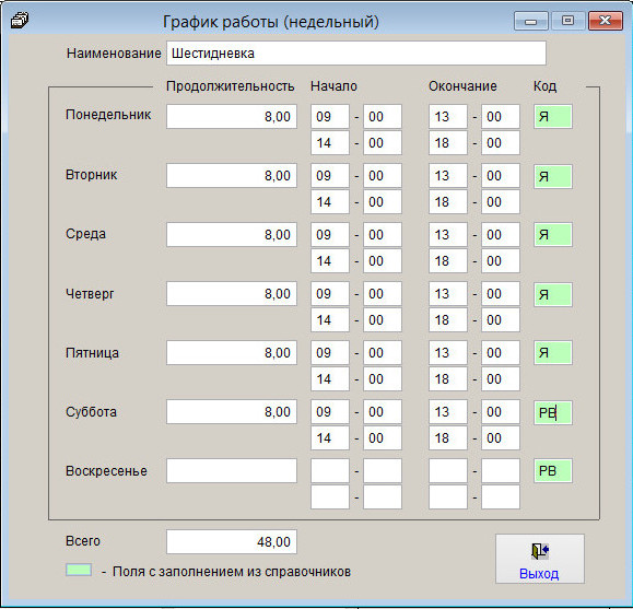 По окончании заполнения графика работы нажмите кнопку Выход.