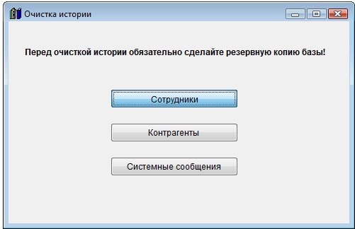 Перед очисткой истории обязательно сделайте резервную копию базы!