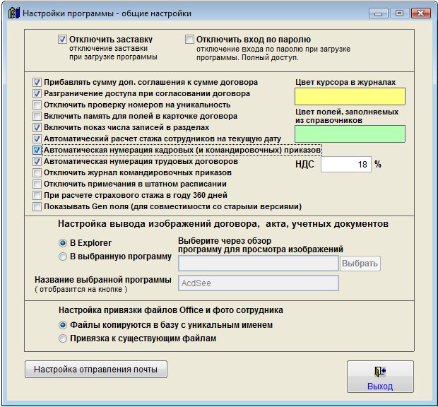 Для включения/выключения автоматического заполнения номеров приказов выберите пункт меню "Сервис-Настройка интерфейса".