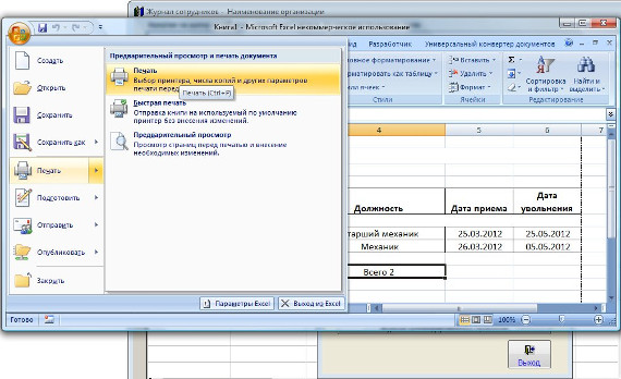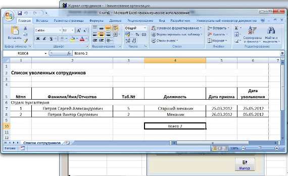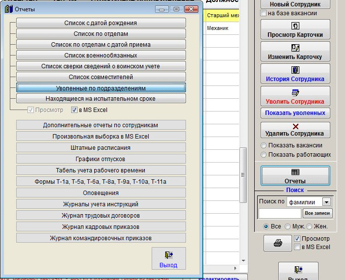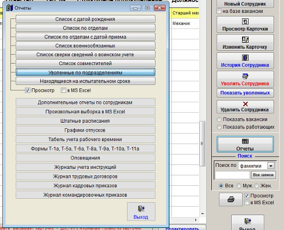 Список уволенных сотрудников по подразделениям сформируется в MS Excel (OO Calc).